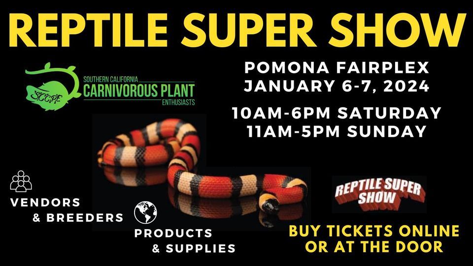 Pomona Reptile Expo 2024 Schedule Online – For entries submitted online, entries will admission for two days) to the Reptile Super Show, January 6 and 7, 2024 at the Fairplex, 1101 W McKinley Ave, Pomona, CA, 91768. . While some considered the weather outside frightful on Saturday, others went out to see some frightful creatures. Donald Trump Refuses to Sign Pledge Against Overthrowing Government Cindy Morgan .